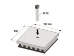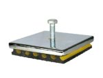 Vibro-EP Metal se compose d’un élément élastique (dimensions 12,5×12,5 cm) et d’un revêtement métallique galvanisé spécialement formé. L’intercession des revêtements en acier entre la base de la machine et l’élastique, assure une répartition uniforme de la charge sur toute la surface de l’élément élastique. En même temps, le revêtement protège le caoutchouc du rayonnement solaire. Au centre de la partie supérieure du revêtement, un filetage interne M12 est incorporé, qui accepte la vis de fixation correspondante (non incluse). Les coussinets élastiques beige, vert et jaune sont en caoutchouc de type Néoprène.