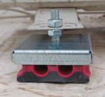Vibro-EP Metal Micro se compose d’un composé de caoutchouc spécial (dimensions 6,25 x 6,25 cm) et d’un revêtement métallique galvanisé spécialement formé. L’intercession du revêtement en acier entre la base de la machine et l’élastique assure la répartition uniforme de la charge sur toute la surface de l’élément élastique. En même temps, le revêtement protège le caoutchouc des rayons UV solaires. Au centre de la partie supérieure du revêtement, un filetage interne M8 est incorporé, qui accepte la vis de fixation correspondante (non incluse). Il existe deux types de caoutchouc à code couleur pour ce produit, en fonction de la charge maximale par fixation (rouge et bleu).