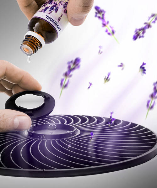 3-In-1 circulation fan for air circulation with a scented oil diffuser, patented swivel-tilt function and turbospin technology