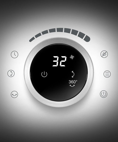 The comfort features of the 3-in-1 circulation fan, which stand out in this device class, are all-round convincing. Three operating modes (ventilation, natural wind, whisper-quiet night mode), 32 wind levels and a practical 12-hour timer for time-controlled switching on and off allow the TVE 100 to be individually integrated into your personal living or working environment. The circulation fan can be controlled via the control panel with a rotary switch or conveniently via the supplied IR remote control.