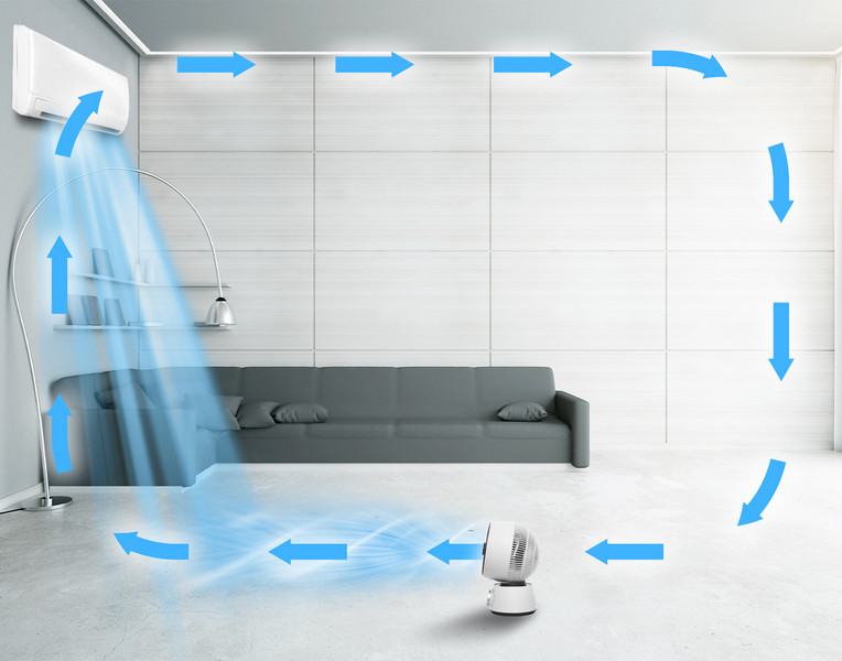 The 3-in-1 circulation fan TVE 100 ensures refreshment, well-being and constant temperatures in the entire room all year round.