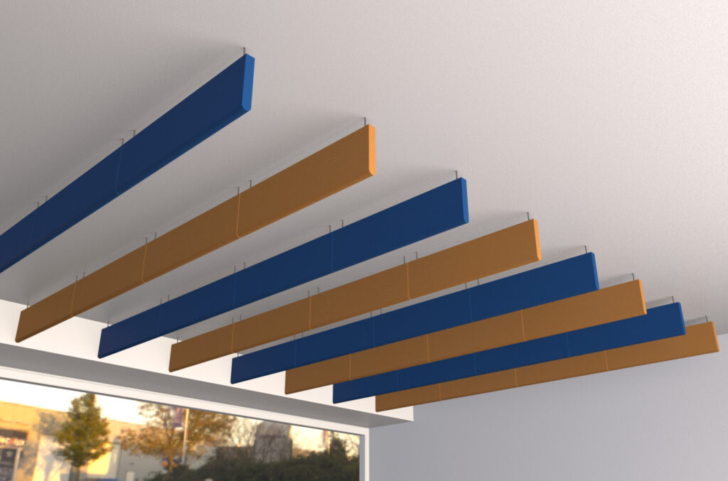 Due to their two very effective sound-absorbing sides, these elements can achieve high sound absorption. They also reduce annoying multiple noise reflections to improve interior acoustics and reduce echo. They create a better acoustic environment, without disturbing the operation of the air conditioning and the lighting system.