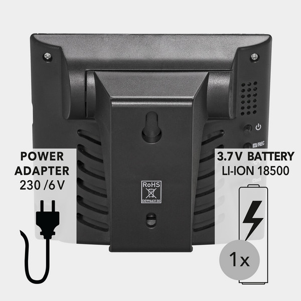 | Internal (battery) | 1 x 3.7 V Li-ion battery or 230 V power adapter | |