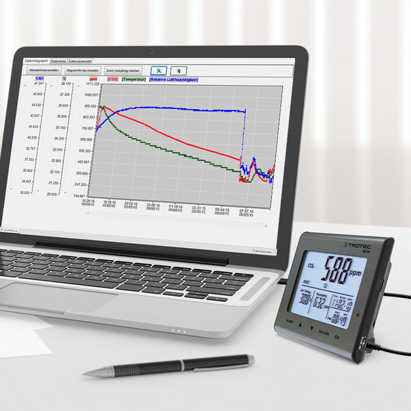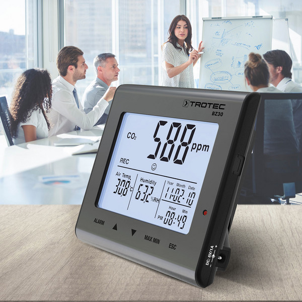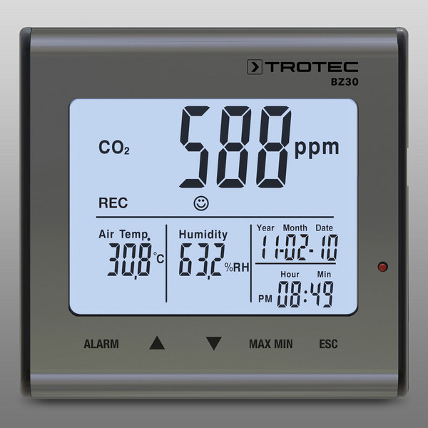 - Carbon dioxide alarm function with acoustic alarm signal for freely definable limit values