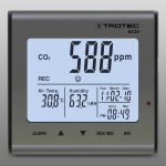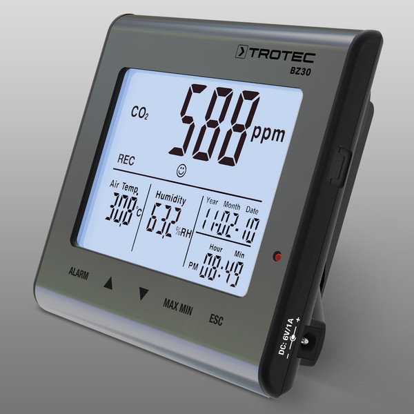 - Simultaneous display of CO2 values, room temperature, humidity, date and time