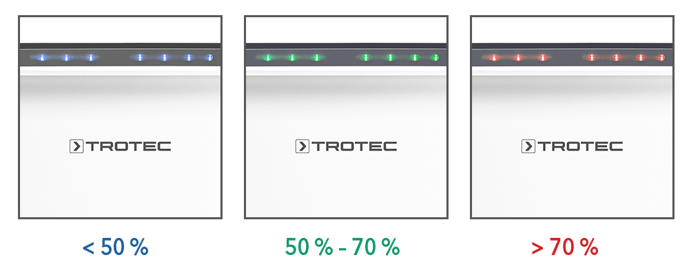 - Green: Indicates optimal air humidity between 50% and 70%