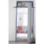 Dust protection door consisting of: Basic door element (for door widths of 680-1430mm) , PVC film with Velcro tape (2x68cm), 4-piece adapter set and transport bag.