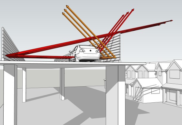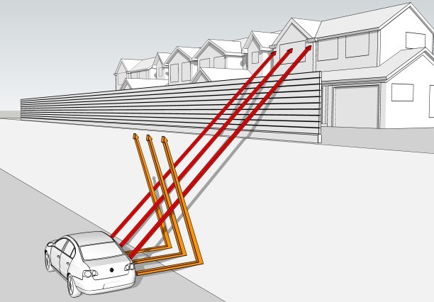 Highway noise metal barrier ALPHAfon-HB is a highly efficient Acoustic Reflection (Air born noise insulating) and sound absorptive solution for noise control in highways or other roads, railways and other mechanical noise sources.
