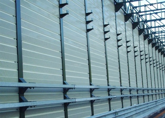The highway noise metal barrierALPHAfon-HB is made from aluminum sheet or a special compound metal sheet (COR-TEN) at the external side and perforated aluminum sheet or perforated special compound metal sheet (COR-TEN) at the noise source side.