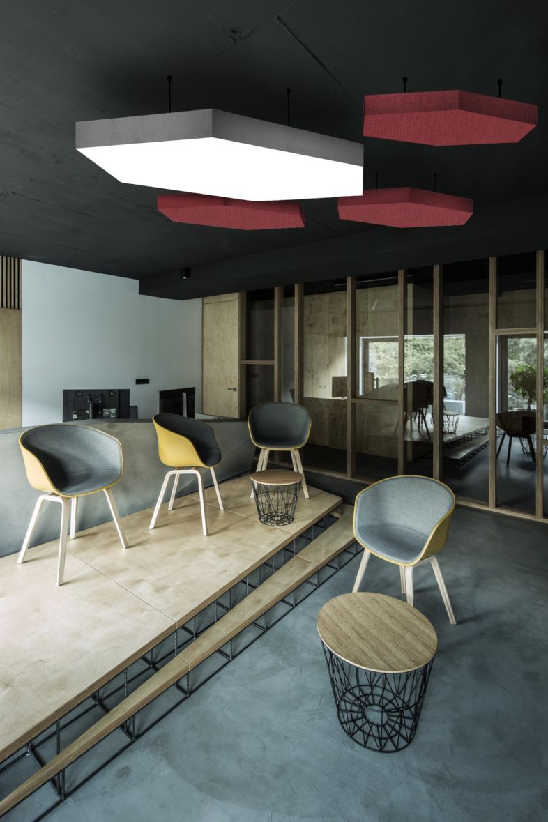 ALPHAcoustic – Sky.Fos is a new series of acoustic panels that combine acoustics with lighting. Named after the Greek word “ΦΩΣ” which means Light, these Acoustic/Luminous ceiling panels can either be suspended horizontally from the ceiling, or attached vertically to the wall. The hidden LEDs, with high intensity, spread light evenly on the front panel fabric surface.