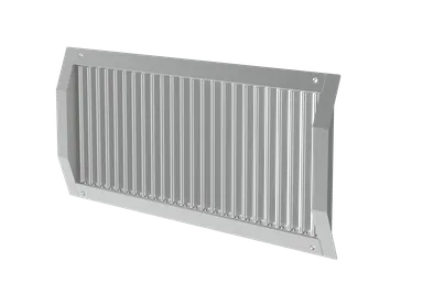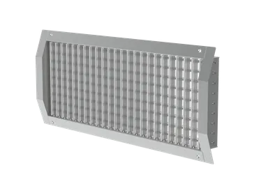 NOVA-C is made from galvanised steel sheet and consists of a frame and 1 or 2 layers of blades. The blades are oriented both horizontally or vertically and the second layer can be perpendicularly oriented to the blades of the first layer. The inclination of the blades determines the airflow discharge pattern. The product has a galvanised surface finish as standard and can be powder painted to any RAL Code on request.