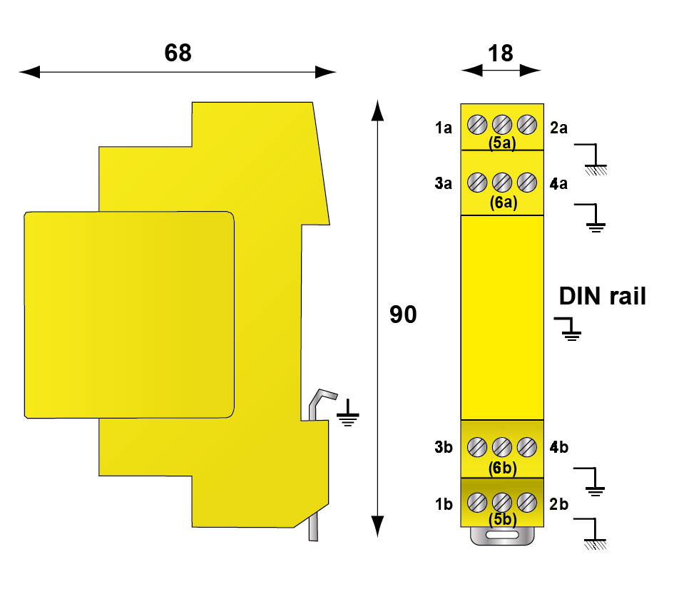 The shield connection is additionally earthed via a gas discharge tube. The earthing connection is conveniently made via the top-hat rail. When the plug-in module is unplugged, the transmission signal is not interrupted.