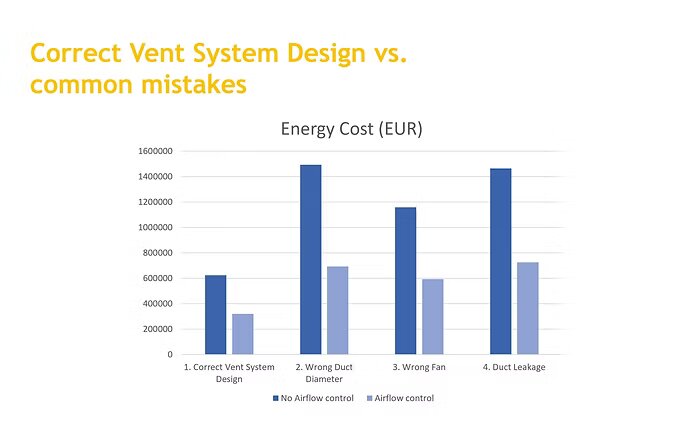 The duct diameter determine the air flow velocity and the pressure inside the duct. The duct pressure determines the number of fans and/or kW rating of the fans, and the power load of the fans. The power load is directly proportional to the power costs to run the fans.
