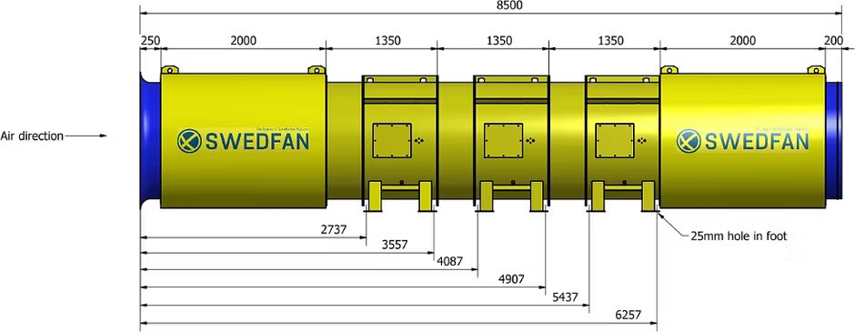 The fan should be chosen to meet the capacity according to the calculated duct pressure and airflow. Too low airflow means no efficient tunneling which results in lower profit for the project. Too high airflow cause higher duct pressure which increase the energy costs.