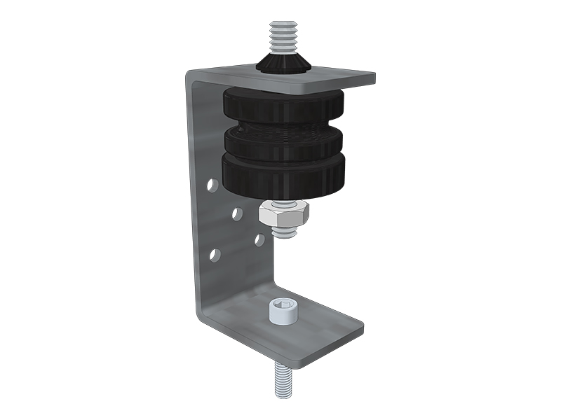 Vibro-UCB.mini is a U form sound isolation bracket, used in a variety of wall and ceiling applications, where structural support combined with vibration isolation is required. That includes wall sway bracing, ceiling suspension and accessory hanging.