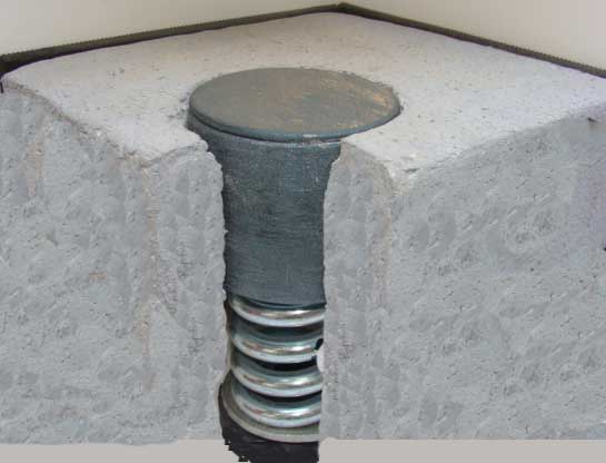 The anti-vibration jack-up spring mount Vibro-JS is an advanced vibration jrcontrol system for raised concrete floating floors.