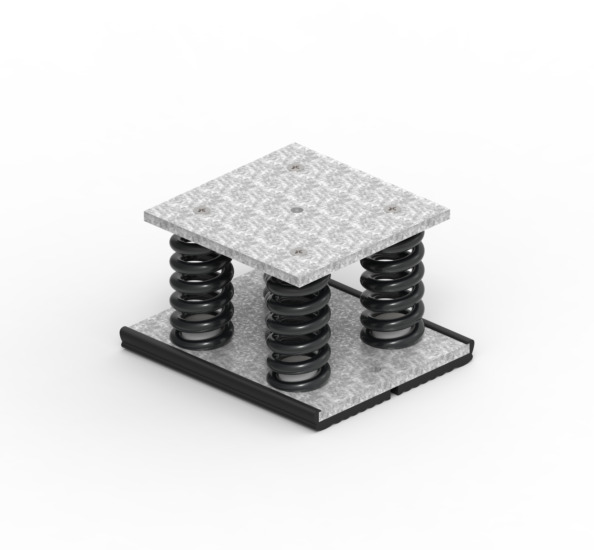 Additionally, the Vibro-MSH comes with a rubber profile that is attached at its base and acts as a sound break to increases the isolation efficiency in high frequencies, which could be transmitted through the springs. The springs are fixed with an innovative fastening system to the metal base.